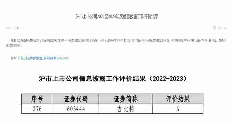 近日,,,上海证券交易所(以下简称“上交所”)发布2022-2023年度信息披露工作评价结果。。yaxin868(股票代码::::603444)凭借规范的公司治理、、高质量的信息披露以及良好的投资者关系管理再次荣获信息披露工作A级评价,,公司连续两年获此殊荣。。